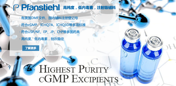 “熱烈祝賀Pfanstiehl的注射級甘氨酸Glycine(G-140)喜獲CDE登記號F20250000403, 這是Pfanstiehl產品獲得的第18個CDE登記號!”甘氨酸在醫藥輔料制劑中應用廣泛,, 可作為緩沖劑,增溶劑,穩定劑等,具有諸多優勢。Pfanstiehl秉承一貫高品質理念,為滿足全球生物制藥行業對于高品質甘氨酸的需求,隆重推出的注射級甘氨酸Glycine (G-140), 具有超高純度,超低內毒素,超低金屬殘留的特點,單獨檢測29種金屬離子,并且新增DNA,RNA,DNA酶,RNA酶和脂肪酶,亞硝酸鹽等多項質量指標的檢測,符合多國藥典規定(USP, EP, BP, JPE, ChP),可用于生物治療性藥物和疫苗的生產。產品信息:· 產品名稱:Glycine, High Purity, Low Endotoxin, Low Metals, USP, EP, BP, JPE, ChP (G-140)· 中文名稱:甘氨酸· 分子式:C2H5NO2· 分子量:75.07 g / mol· CAS號:56-40-6· 產品貨號:G-140產品特點: · 超高純度,超低內毒素,超低微生物含量,超低金屬雜質殘留· 質量指標新增DNA,RNA,DNA酶,RNA酶,脂肪酶和亞硝酸鹽檢測· 符合多國藥典:USP, EP, BP, JPE, ChP· 符合ICH Q3D標準· 符合GMP標準· 已獲DMF和CDE登記號 產品應用:· 緩沖劑· 穩定劑· 增溶劑如果您對Pfanstiehl注射級別Glycine G-140感興趣,歡迎聯系Pfanstiehl 中國區代理商北京西美杰科技有限公司獲得如下詳細的產品概況說明文件和測試樣品。Pfanstiehl Inc.最新產品系列如下,歡迎聯系北京西美杰科技有限公司獲取100g裝免費樣品。北京西美杰科技有限公司為Pfanstiehl中國代理,為客戶提供完善的技術支持與售后服務。歡迎撥打西美杰客服電話400-050-4006或者登陸網站www_xmjsci_com.hxinli.com了解更多信息。 更多>